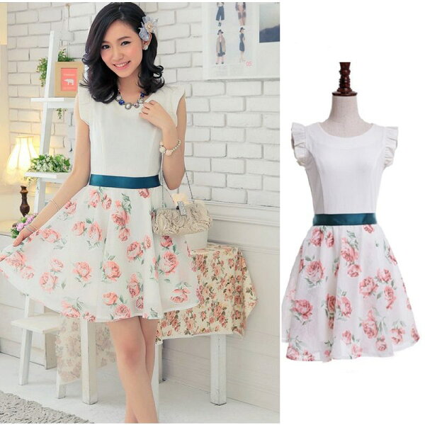 ~甜美清新造型獨特~, 灰姑娘[6661-S ]中大尺碼*兩穿式韓國玫瑰歐根? 修身短袖洋裝(兩件式)。在樂天市場的灰姑娘衣著館有最棒的商品,是您省錢的最佳選擇。